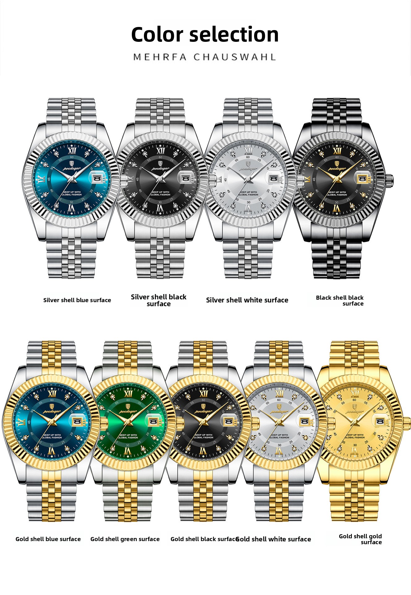 Color Options: Gold/blue, gold/white, gold/black, gold/green, silver/blue, silver/white, silver/black, black/black,