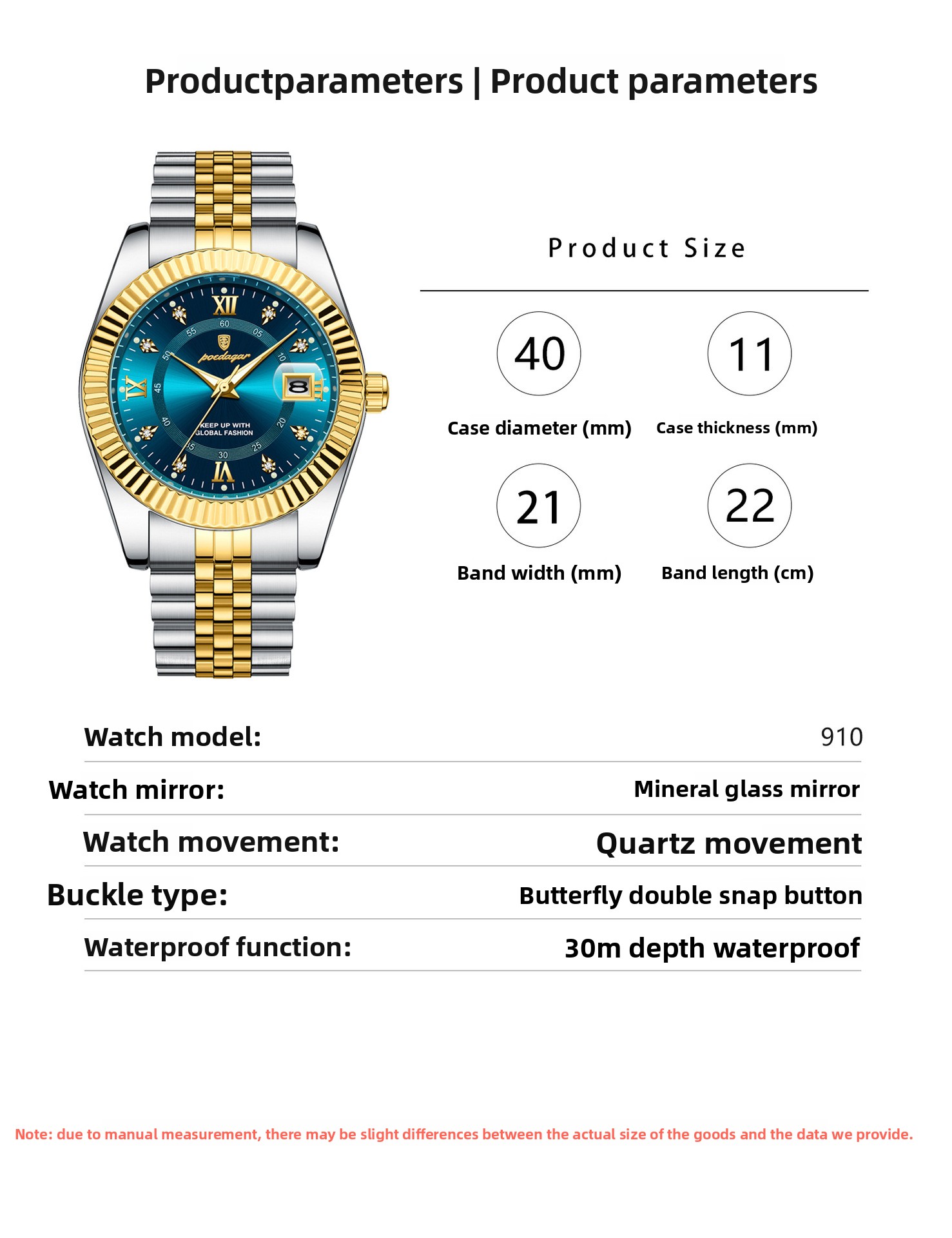 Water Resistant: 30-meter water resistance for daily wear protection