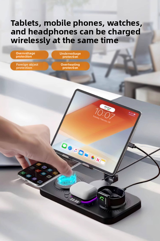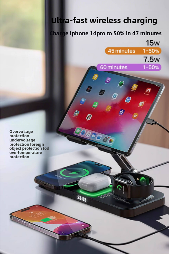 Multi-Device Compatibility: Simultaneously charges phone, watch, and earbuds