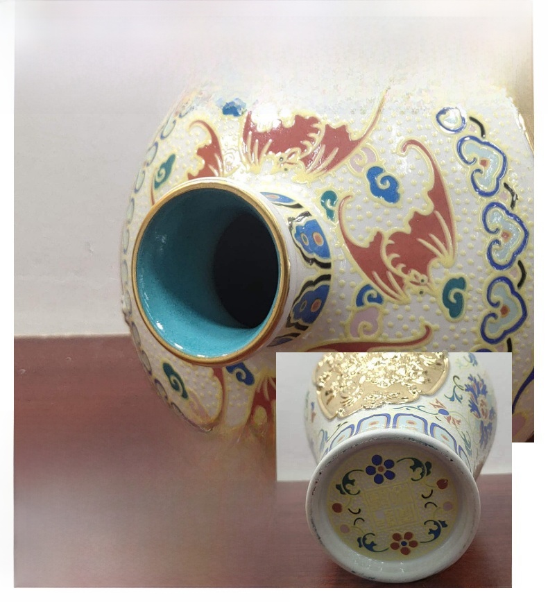 Traditional Craftsmanship: Handcrafted Jingdezhen ceramic with intricate embossed floral patterns, reflecting