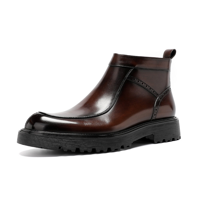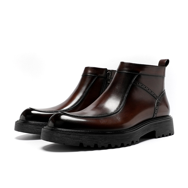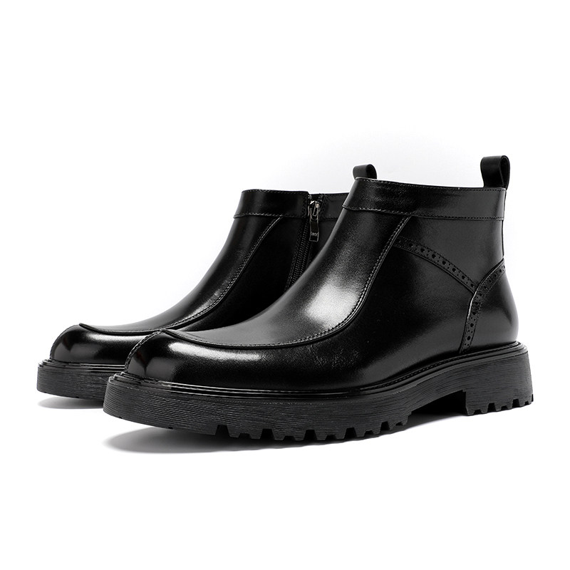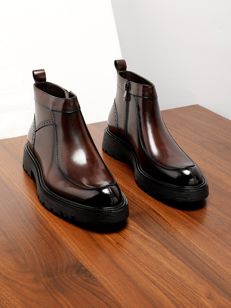 Zippered high-top leather shoes