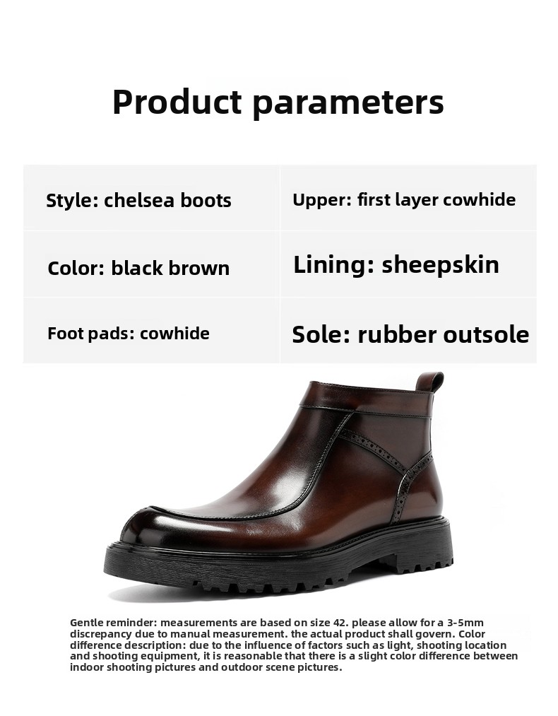 Genuine Leather: High-quality first layer cowhide upper and sheepskin lining for durability and comfort
